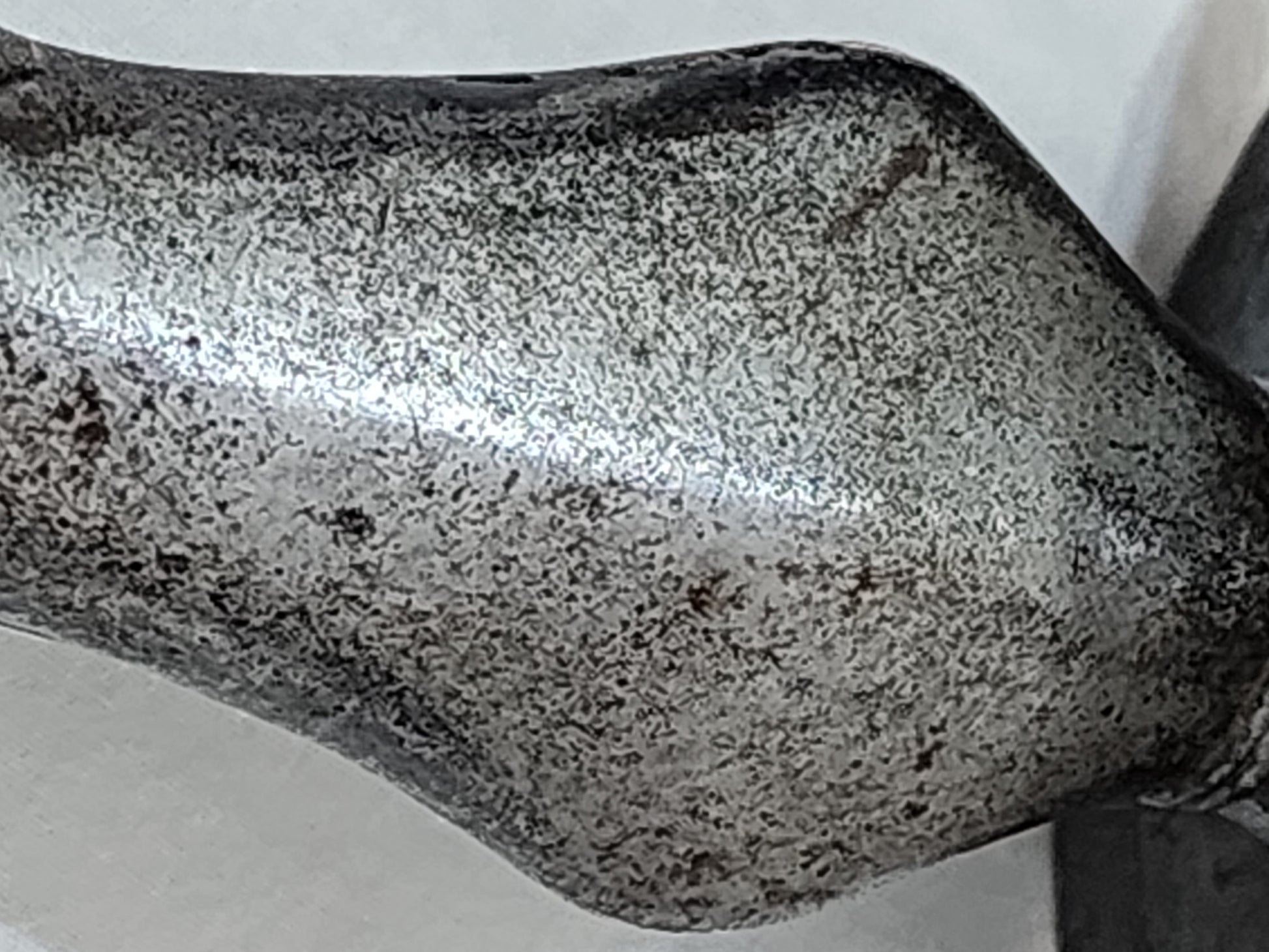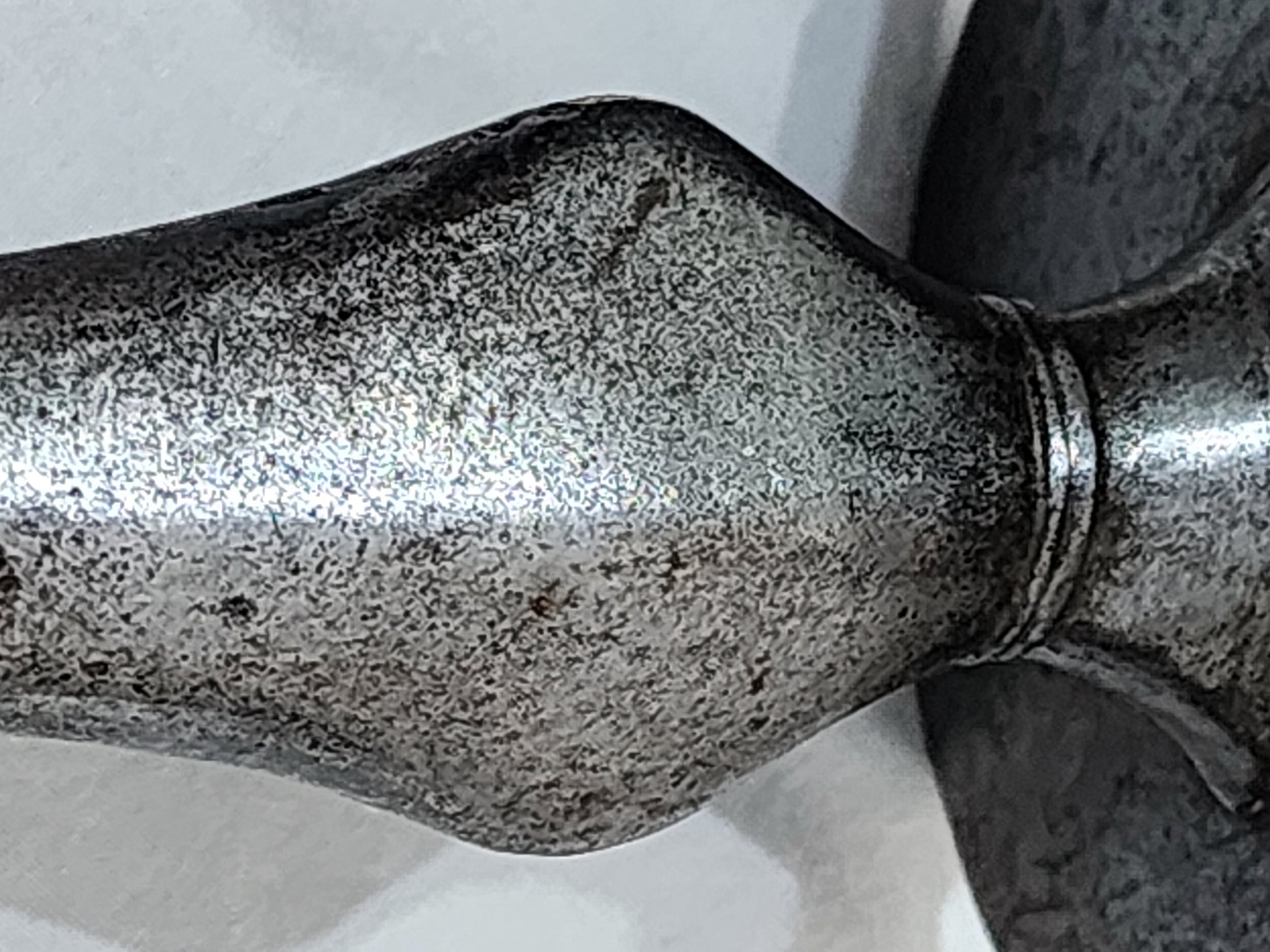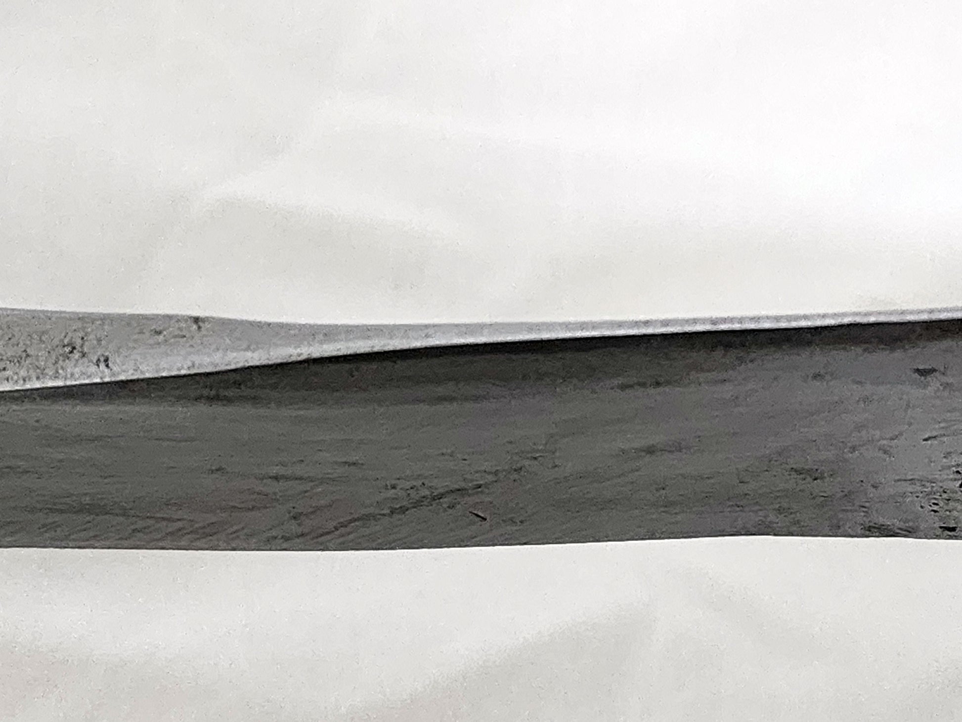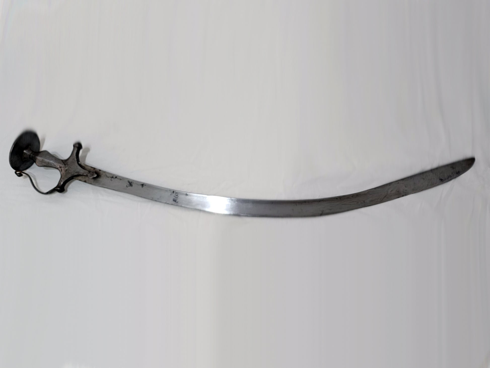 A magnificent example of a very functional curved North Indian Tulwar sword. The blade is pattern welded, and has a very pronounce T-section. The spine is unusually very thick; the sword maintains a pleasant feel overall. The latter 20cm of the blade possesses a sharp back edge. Very well balanced blade with minimal wear; the edge is razor sharp and well kept. The wootz hilt possesses a solid knuckle guard and has no movement. Similar to other pieces on www.shastaragar.com this item has not been tampered with or acid etched to bring out the pattern; in some cases such treatment affects the blade's integrity and makes it more susceptible to rust. This is sword is designed to inflict brutally vicious deep cuts when wielded with the higher body mechanics of Sanatan Shastar Vidiya, for example Nandi Yudhan upwards. A rare piece especially given the high quality metals used for the blade and hilt.