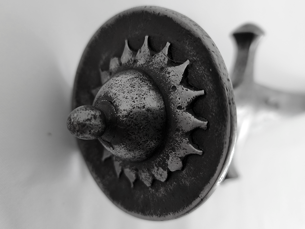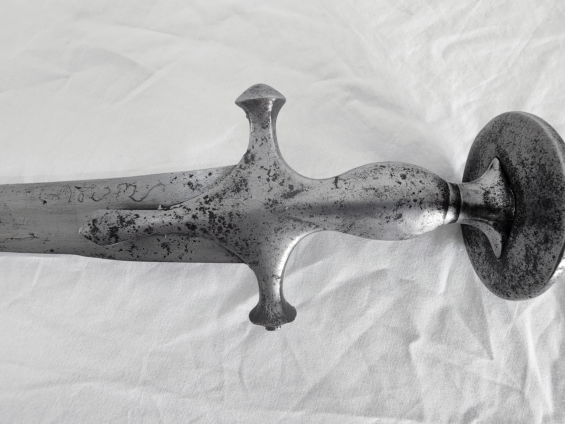 The blade has an armoury inventory mark, typical of very fighting high-end swords. The blade is most likely wootz steel, however it has not been etched. The edge is very sharp and clean. The spine is strong and sturdy.