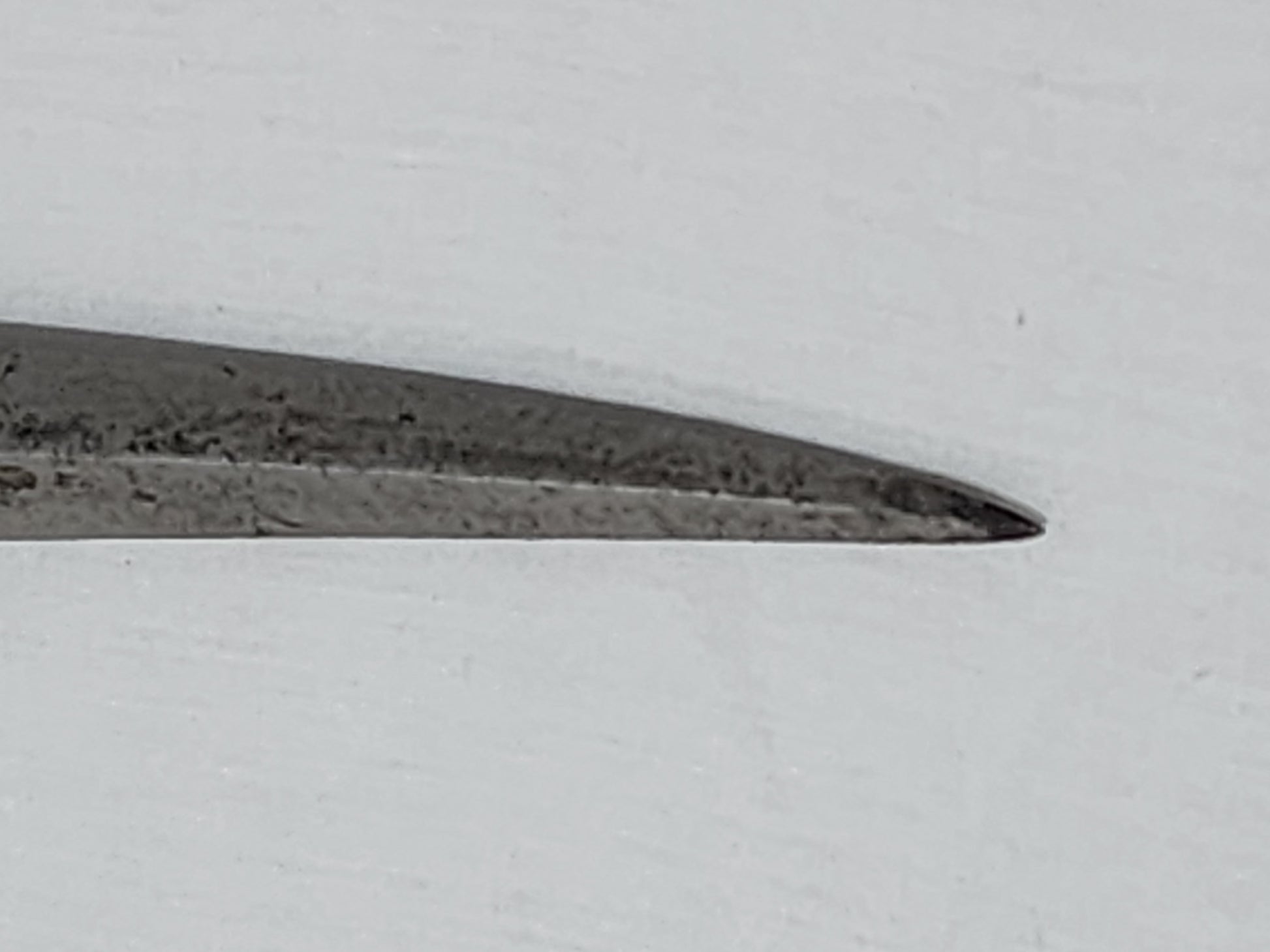 A rare armour-piercing kard dagger with Elephant Ivory scales. The blade is made of wootz with a characteristic "ring" to it. It has a slight gentle curve. Known as a zirah bouk ("armour piercing"), its purpose is to go through chainmail. A very rare item.