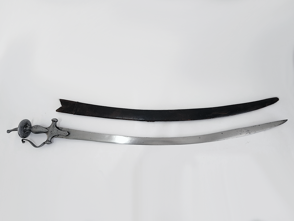 The sword comes with a wooden scabbard covered in black leather; it is in relatively good condition. A scabbard for the sword can be made on request. Please contact us on shastaragar@gmail.com to request a quote.